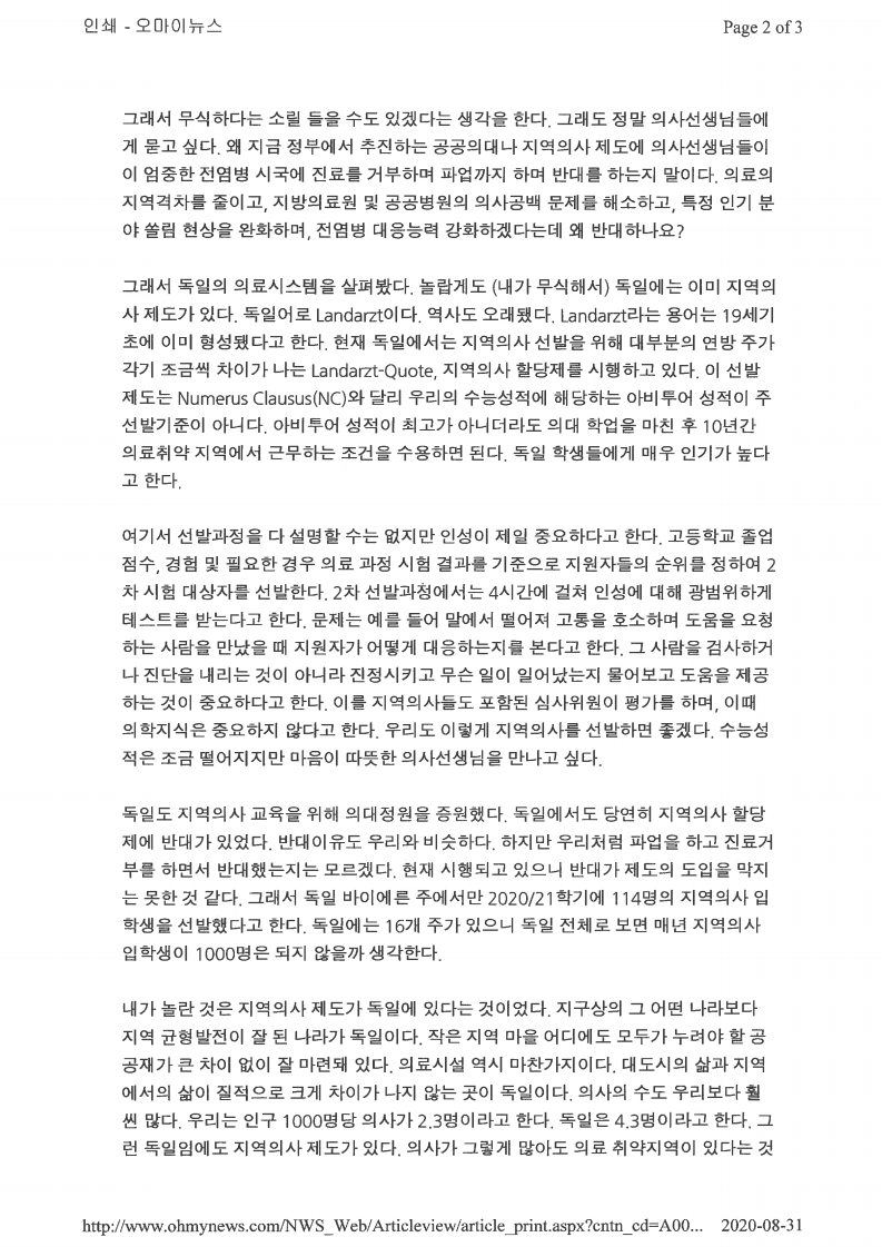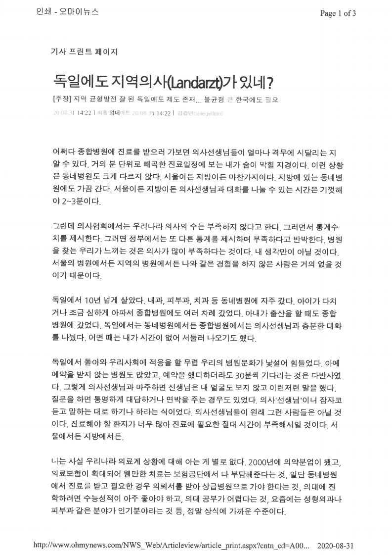 [독일에도 지역의사(Landarzt)가 있네?] 라는 주제로 김갑년 교수님께서 기고하신 글 공유합니다.